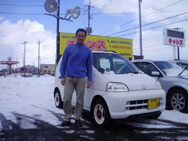 セカンドカーのかわりという事で安く乗れるお車をさがしに遠く上越市からネットを見てご来店されました。正月明けに雪の中で決めていただきました。車庫証明もご自身で届出されて当店もほんと助かりました。この後もよろしくお願い致します。この度は誠にありがとうございました。 |