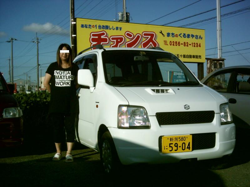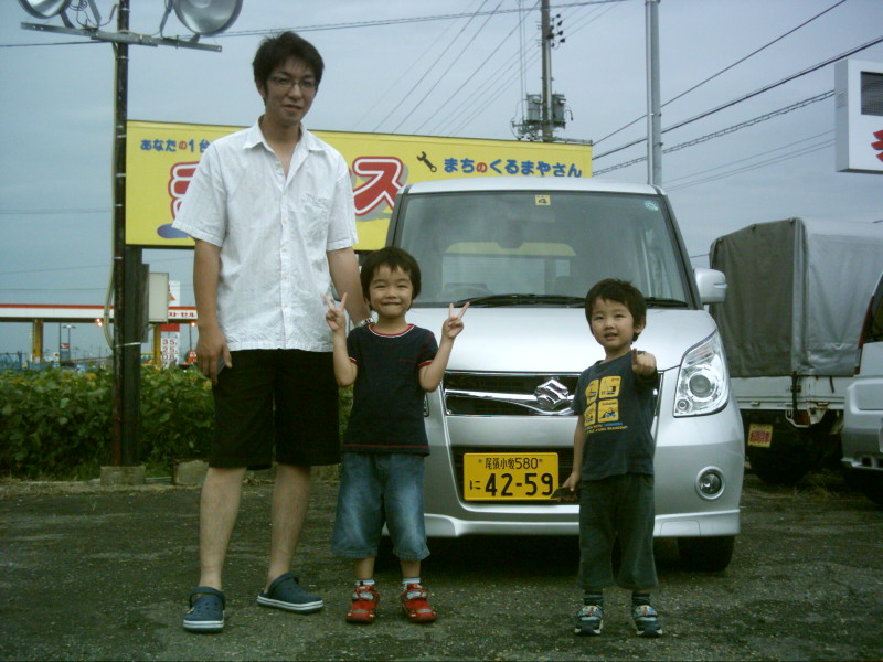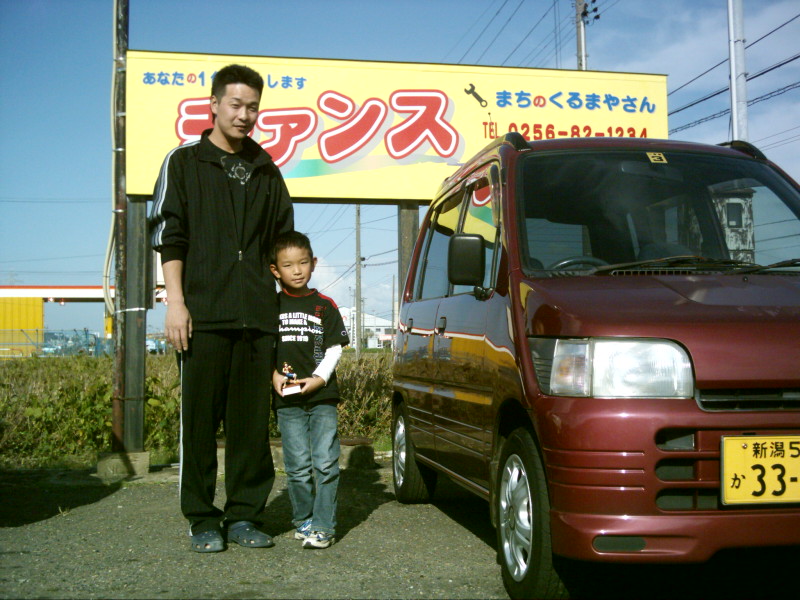 前出のお父さんにつづいて当店で3台目を購入いただきました。ご自身のご希望でワゴンアールの黒で4駆のオートマ、予算もピタリとうまく在りまして決めてくださいました。ぜひこの後も4台目をとお願い致します。この度は誠にありがとうございました。 |