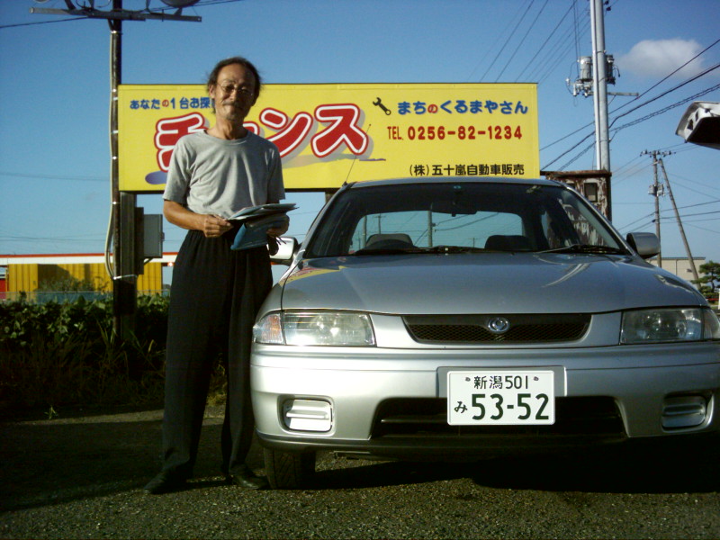 今、乗ってる軽自動車ですとどうしても具合が悪いとの事で、乗用車をお探しでした。コンパクトカーのファミリアです。車検もまる2年とプライスもどこにも負けないリーズナブルに設定。即決していただきました。廃車するようなお車がありましたらお持ち下さい。このたびはありがとうございました。 |