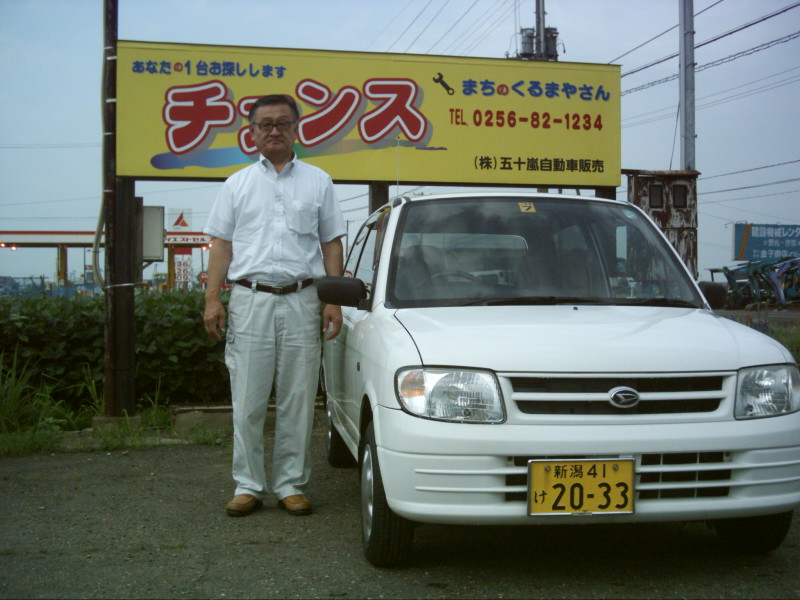 当店の前の国道を通るたびに「安い車屋さんがあるんだよ」と母親から教えられてきました。と、こちらの奥様です。試乗されて即決していただきました。この後も車が必要な方がいらっしゃいましたらご紹介をよろしくお願い致します。この度は誠にありがとうございました。 |