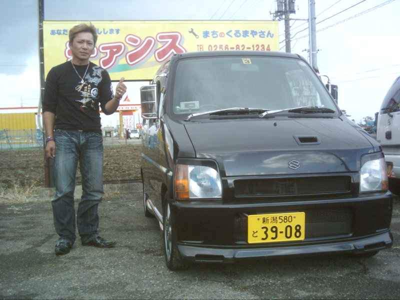 現在乗ってる車が超バリバリのド級カスタムクラウンですが、どうしてもこの手のワゴンRに乗りたいという事で、当店で探しました。ラッキーにもすぐに見つかりました、よかったです☆RRでマニュアル、黒、4駆、また遊びに来てください。 |