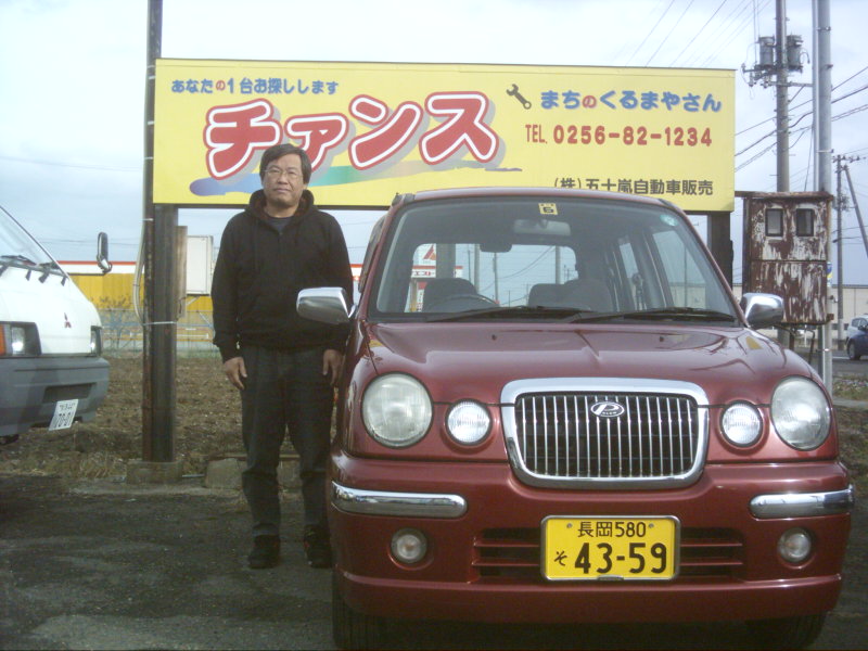 遠いところからネットを見てご来店されました、当店から50キロもあります。乗り出しの安い車という事でしたが、近くに来られた際はいつでも寄ってみて下さい。ご近所の方にも話のタネに紹介お願い致します。このたびはほんとにありがとうございました。 |