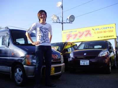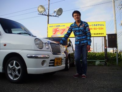 遠く新発田市からネットを見てご来店されました。通勤用に手軽に乗れる軽を検索したらマニュアルでこのミニカが、大ヒットしたそうです。さっそくご試乗されて即決していただきました。今後も「安いクルマ検索」つづけて下さい。この度は誠にありがとうございました。 |