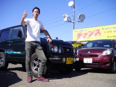 通勤と遊び用のクルマという事で、ネットを見てご来店されました。「何年かぶりのマニュアル車ですよ」とご試乗されて、後日にご成約。納車の日は裏のJR岩室駅に下車、徒歩でのお引取りです。何軒かあるジムニーの販売店の中から当店のジムニーを選んでいただき、この度は誠にありがとうございました。