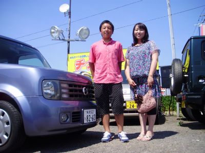 当店で、2台目を決めていただいたお得意様です。今回は代替で、すぐ乗れる。程度が良い。もちろんリーズナブル。そういう話しはチァンスは得意です。ちゃんとご用意させていただきました。ご依頼もらって5日目に納車できました。今度はご両親のおクルマもよろしくお願い致します。この度は誠にありがとうございました。 |